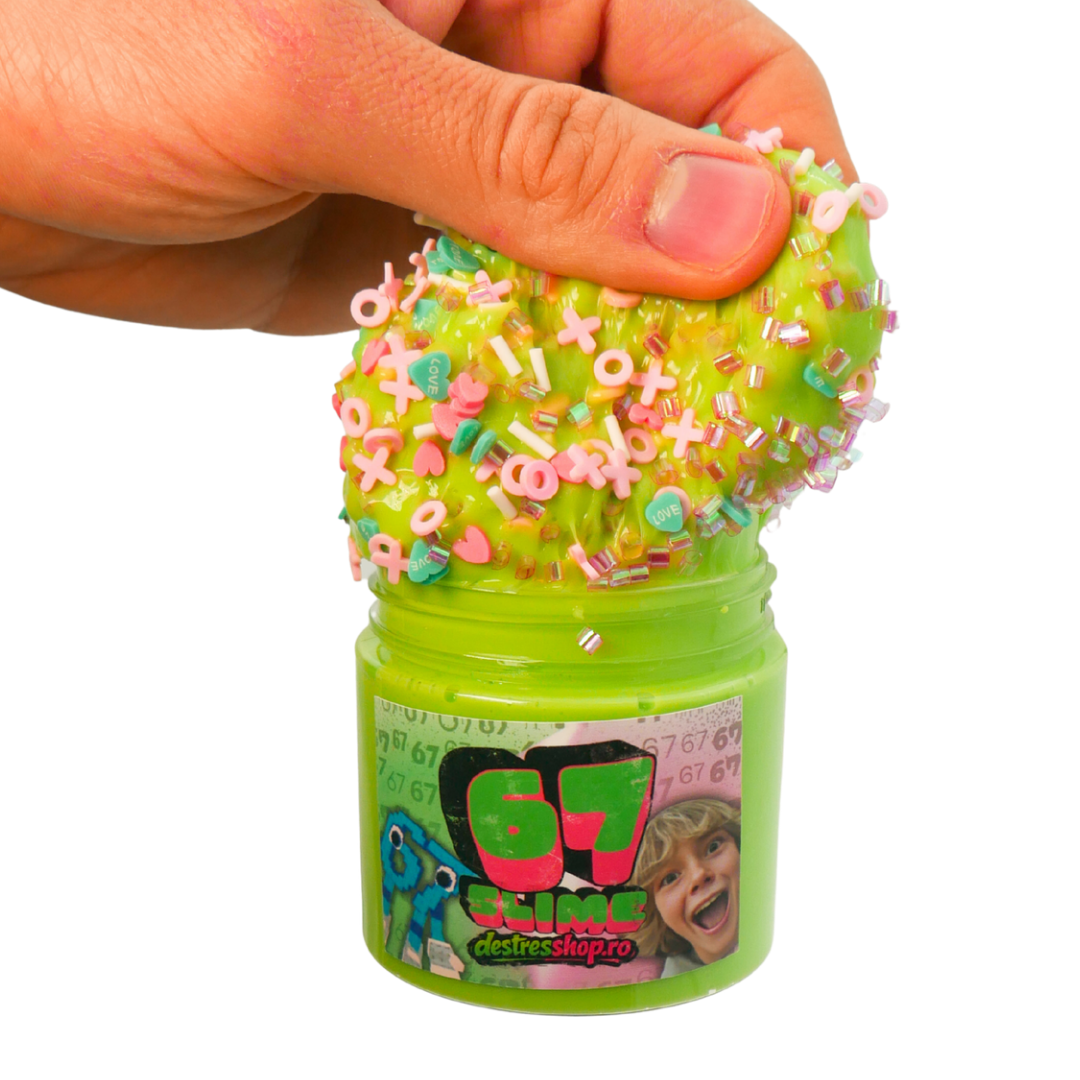 - 1 borcănaș de slime 67 SLIME – Textură Thick & Glossy, densă și lucioasă, perfectă pentru sunete ASMR puternice.